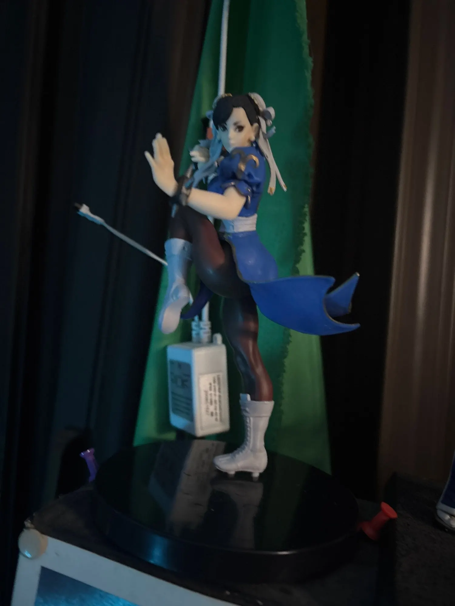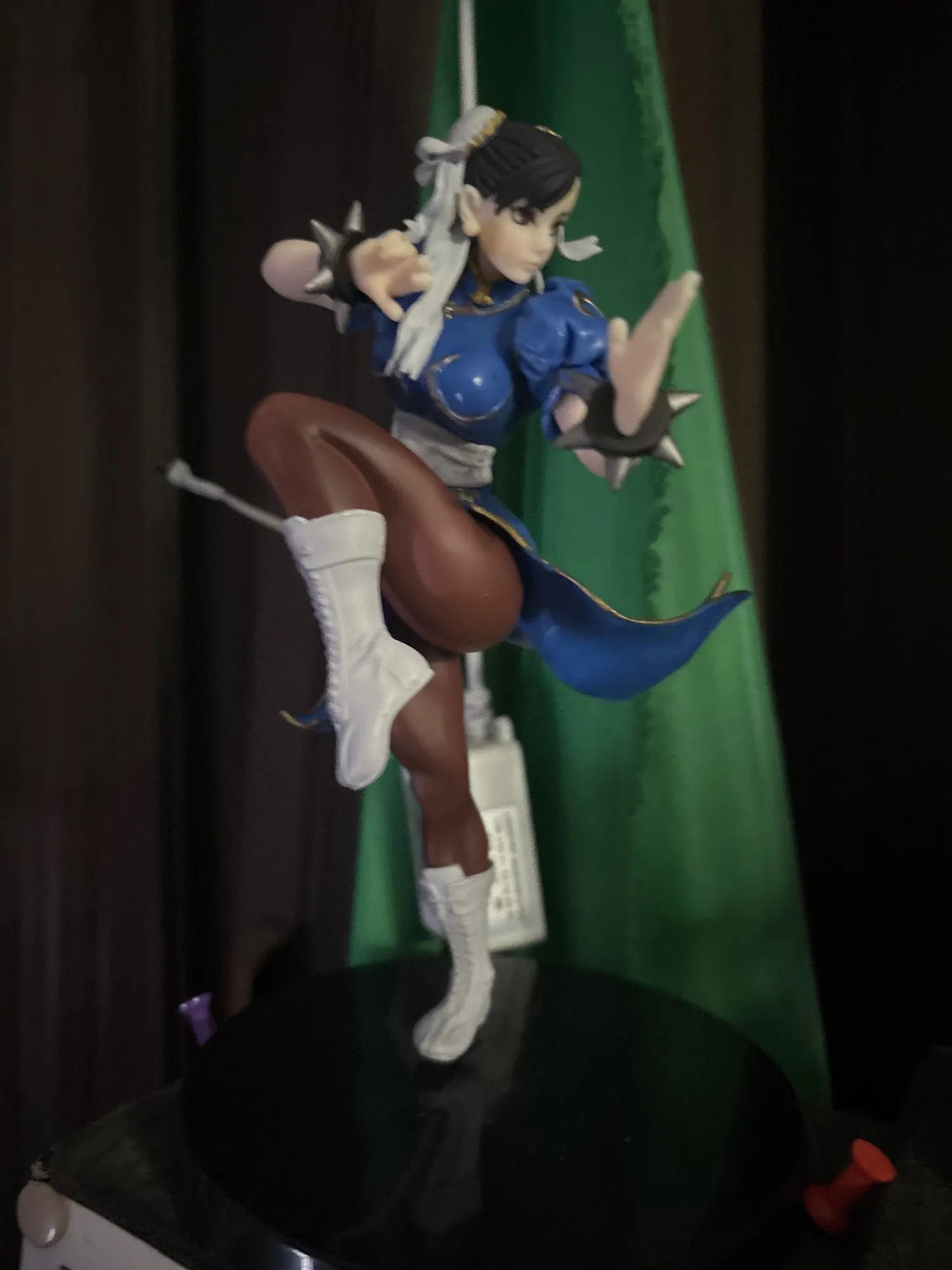 - Dynamic Pose: Captures Chun-Li mid-action, standing on one leg as she prepares to strike, showcasing her speed and martial arts mastery.